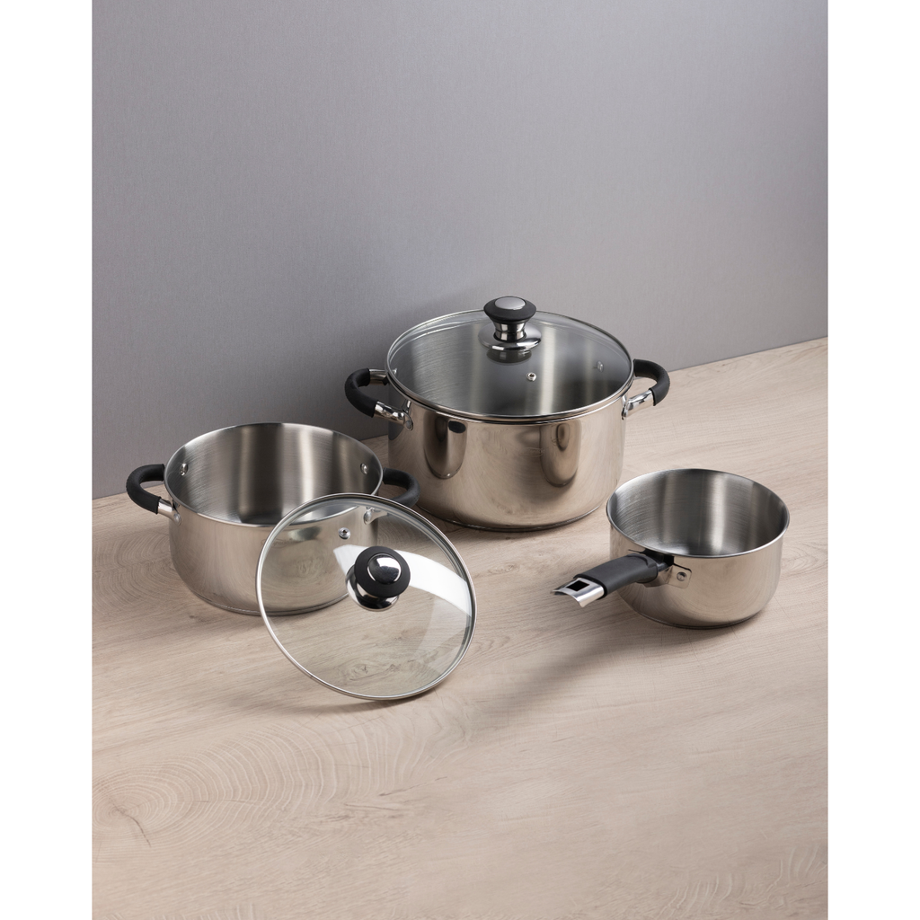 La batería Bilma de 5 piezas en acero inoxidable es tu aliada perfecta en la cocina. Construida con materiales premium, distribuye el calor de forma uniforme para resultados profesionales en cada preparación. Ideal para cocinas modernas que exigen calidad y rendimiento.