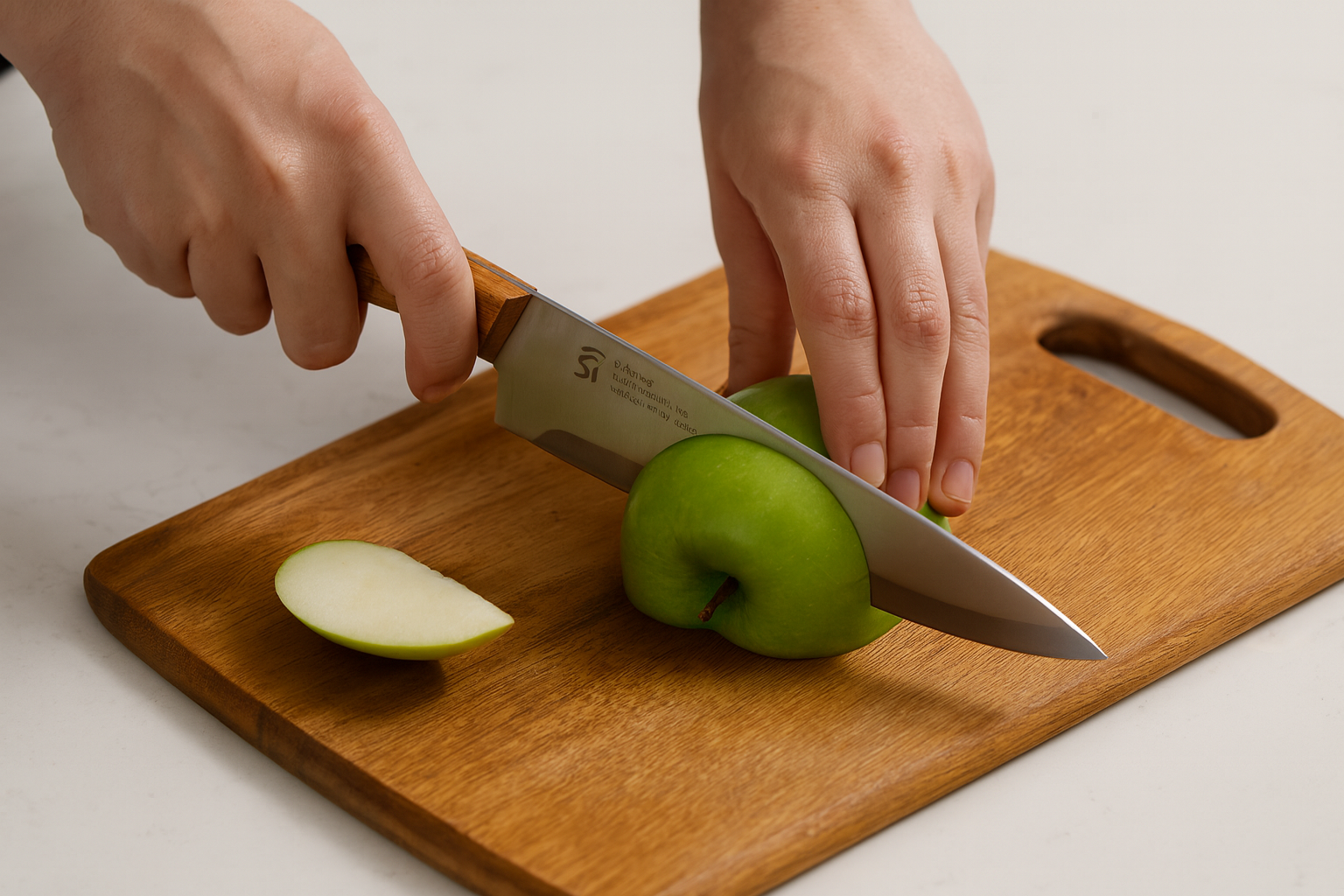 - Su hoja con pequeños hoyuelos en el borde evita que los alimentos se adhieran durante el corte.