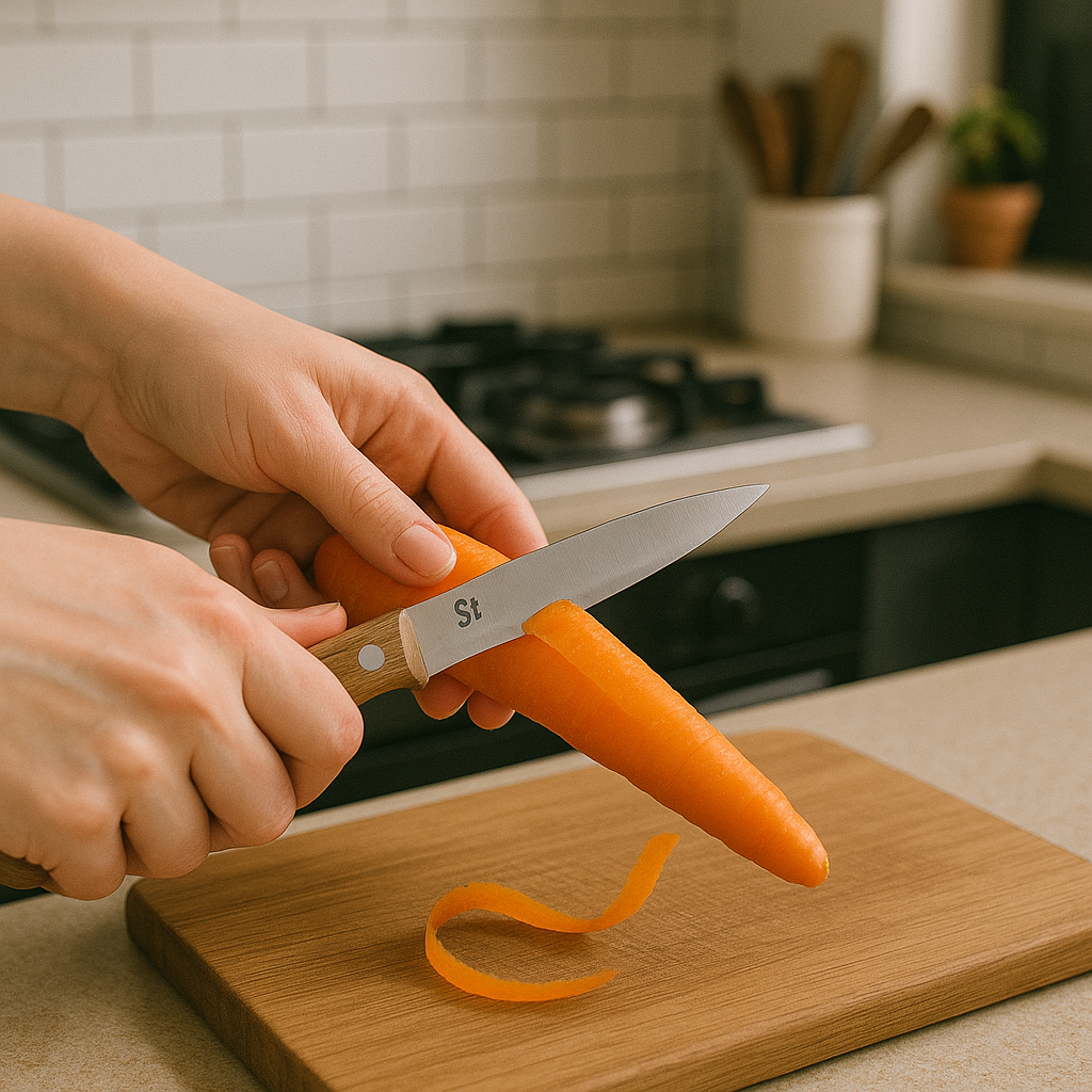 - Es un cuchillo liviano, con una punta afilada para trabajos más delicados como pelar y desmenuzar.