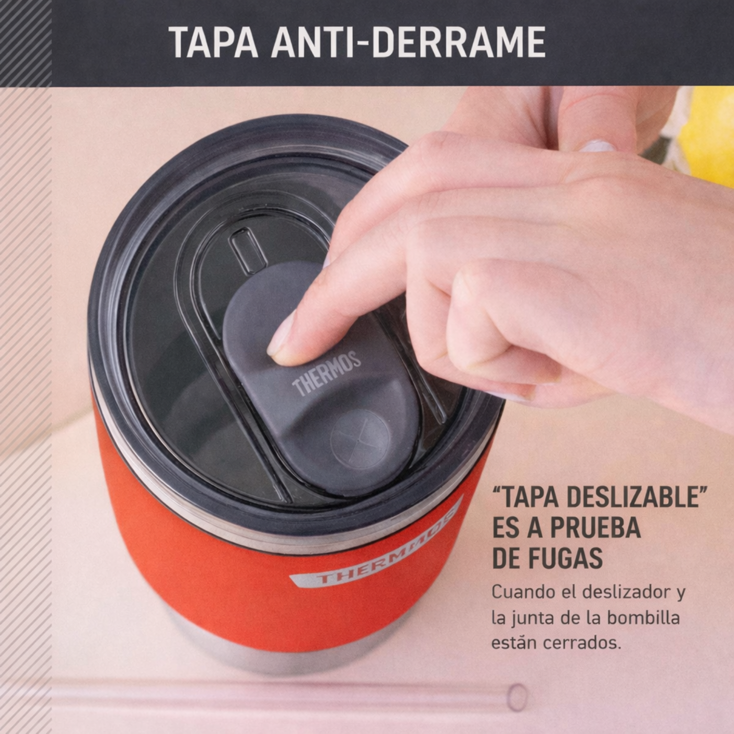 Mantente hidratado durante todo el día con este mug Thermos de 1,2 L, ideal para el trabajo, la rutina diaria o el entrenamiento. Su diseño práctico permite que calce en la mayoría de los portavasos estándar, perfecto para llevar en el auto o mochila.